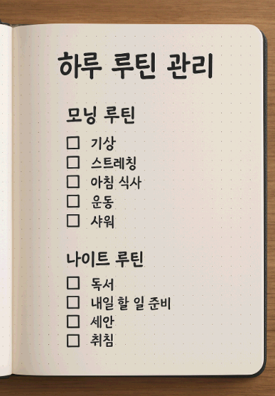 특히 모닝루틴과 나이트루틴을 구조화해 기록함으로써, 하루하루를 더 의식적으로 살아갈 수 있게 됩니다.