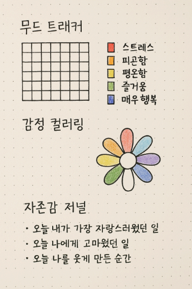 그 중에서도 불렛저널을 활용한 감정 일기 쓰기와 무드트래커 작성법은 많은 사람들이 실생활에서 쉽게 실천할 수 있는 멘탈 관리 도구로 주목받고 있습니다.